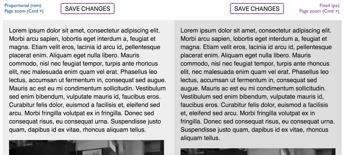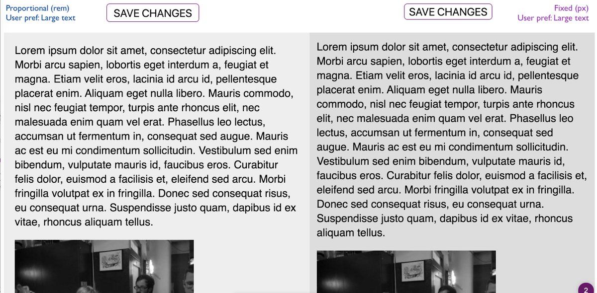 saschawolff1 a_sandrina_p luis_sserrano So in summary… I think they are used by different people and in different scenarios. Page zoom is far more robust and less prone to breaking. User preference can look very bad if we don’t test for it. I think rems keep the look much closer to intention and less distorted. 3/3