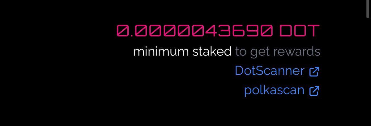Well, credit where credit is due. This has since been fixed. Thanks to the Polkadot devs. The minimum amount of $DOT to earn rewards is now super low. Currently at: 0.0000043690 DOT. Kudos kianenigma et al. 👏 polkaview.network/ github.com/paritytech/polkadot/issues/2418 andr3/1365786873961078790