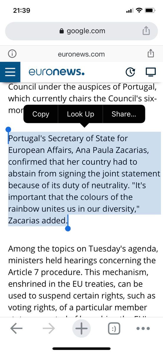 LiberalPT Claro que vocês tinham que saltar para o aproveitamento básico e infantil, né? Ao menos são consistentes. É assim que querem cooperação? 🤦♂️ Que decepção de partido. O Liberalismo merecia melhor. euronews.com/2021/06/22/thirteen-eu-countries-denounce-hungary-s-new-anti-lgbt-law