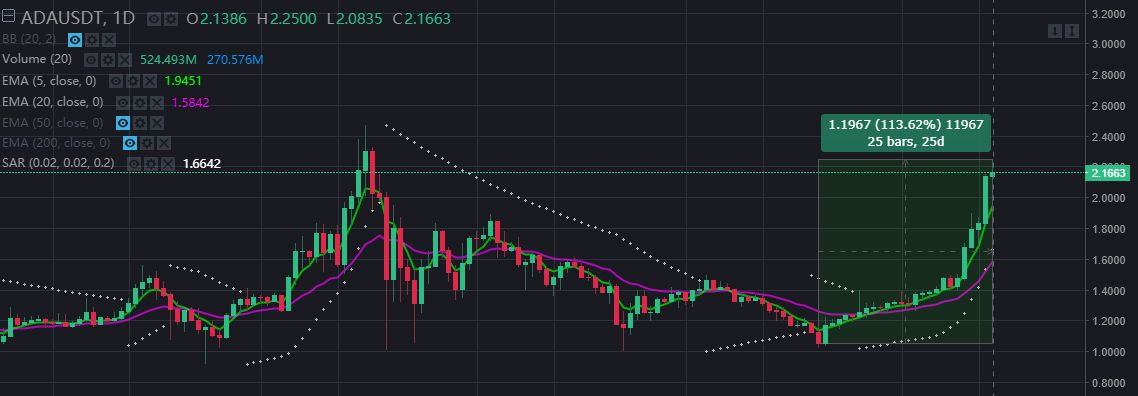 +113.62% em 25d soa ainda melhor. 😅 Quando é que trocas de $ETH para $ADA? Smart contracts na mainnet a 12 de setembro. 😉