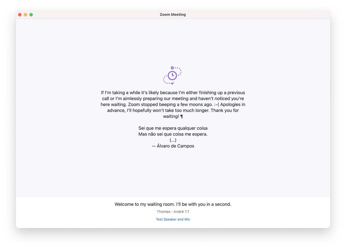 POV when you get thrown into your own waiting room on zoom because you're logged out of the app. Well, at least we got poetry! 😅
